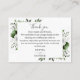 Un élégant mariage à fleurs vert olive vous remercie la carte de réception, personnalisée avec un message spécial et les noms de la mariée et du marié. Conçu par Thisisnotme©