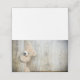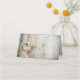 Cartes de lieu pliées avec une photo de chéri d'un mignon ours en peluche, debout près d'un mur en bois rustique / fond de décor.