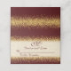 Une carte élégante avec une bordure supérieure et inférieure en parties scintillant dorée sur bordeaux profond. Il y a également un menu assorti, des cartes de numéro de table, des serviettes et bien plus de choses essentielles.