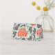 Une délicate pivoine beige encadre la carte de place avec des pivoines rose orangé imprimé à l'envers de la carte pour cette touche spéciale.