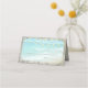Ces cartes de place de table complètent votre décor rustique mariage côtier de plage. De belles vagues d'océan bleu aqua s'écrasent contre la plage, encadrée de bois patiné rustique et de lampes à cordes sur le dessus.
