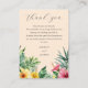 Une élégante pêche aquarelle fleurs tropicales avec mariage vert merci carte de réception, personnalisée avec un message spécial et les noms de mariée et mariée. Conçu par Thisisnotme©
