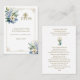 Comprend une belle carte de prière de souvenir de première communion florale bleue avec la prière Anima Christi et la prière de communion.