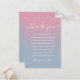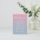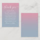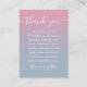Un élégant carton de remerciement de réception de mariage. Personnalisé avec votre message de remerciement spécial dans une typographie élégante sur un fond ombré rose et bleu poussiéreux. Vous pouvez personnaliser le fond à la couleur de votre thème de mariage préféré. Un remerciement spécial pour vos invités. Conçu par Thisisnotme©
