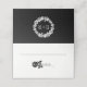Couronne de rose noire et blanche avec vos initiales carte d'escorte pliée mariage. Cette carte de visite présente une couronne blanche en rose de style vintage, dans une approche moderne et contemporaine.