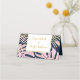Carte De Placement Rose, or tropical feuille marine bleu mariage