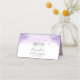 Vous cherchez des cartes de place élégantes pour une célébration sur le thème de violet clair et d'argent ? Ces magnifiques cartes d'accompagnement pliées personnalisables, créées avec une œuvre d'art originale de Raphaela Wilson, facilitent l'ajout d'une touche personnelle à vos tables de réception grâce à un modèle DIY simple. Chaque carte personnalisée présente des roses aquarelles en lavande douce et en lilas avec un contour de bannière argenté, laissant une zone vierge pour les noms des invités écrits à la main, ainsi que des champs de texte pour personnaliser avec les sélections de repas et les numéros de table. L'œuvre d'art unique et enchanteresse de conte de fées présente également trois roses violettes claires avec des accents d'encre argent et gris charbon sur un fond blanc propre. Au dos, vous trouverez une couronne de princesse argentée délicate, des confettis de papillon scintillants factices et un lavis d'aquarelle lavande douce. Vous pouvez facilement ajuster les polices de caractères modernes minimalistes et de calligraphie à une typographie qui convient le mieux à vos goûts, personnaliser le texte avec des noms ou des détails d'événement, ou même ajouter un message de remerciement. Laissez votre créativité briller avec ces cartes de place élégantes violet clair - parfaites pour un mariage de conte de fées, une quinceañ