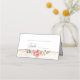 Jolie grappe d'élégantes aquarelles rose vif et feuillage sur un arrière - plan pastel pastel aquarelle, étiquette bordé d'or et graphique de texte personnalisé "Table" dans une police de script formelle avec des éléments de ligne pour le nom d'invité et le numéro de table.