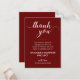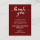 Ces beaux textes en rouge foncé et blanc remercient les cartes de place sont une merveilleuse façon de faire savoir à vos invités qu'au lieu de faveurs, vous avez fait un don à votre charité préférée en leur honneur le jour de votre mariage.
