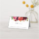 Fleurs rustiques colorées aux couleurs riches de terre cuite, bordeaux, roses, jaunes et vertes bordent le haut de cette belle carte de place pliée. Le texte facultatif a été ajouté pour accueillir une réception de mariage, des banquets et des événements qui utilisent des sièges numérotés. Ce texte facultatif peut être supprimé si vous souhaitez utiliser ces cartes pour divertir de petits groupes.