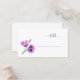 This elegant wedding place card features a minimalist design with three beautifully illustrated poppy flowers in shades of pink and purple, accented by green leaves. The layout is clean and modern, with the word "table" written in a delicate lavender script font above a matching line, creating a chic and sophisticated look. The color palette of purples, pinks, and greens against a white background evokes a serene and inviting mood, perfect for adding a touch of grace to your wedding reception. The hand-painted style of the flowers adds an artistic flair, making this card a charming addition to any table setting.