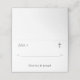 Le design avant présente un arrière - plan blanc au numéro de table qui est affiché en haut à gauche dans une police élégante de couleur argent. Center affiche une fine ligne couleur argent pour le nom de l'invité. Une saveur délicate est présentée de part et d'autre. Une croix argentée est affichée dans le coin supérieur droit. Les prénoms des couples sont affichés ci-dessous en une impression claire. Le design intérieur consiste en votre message de gratitude au-dessus d'une délicate floraison. L'Arrière - plan est blanc. Également disponible en rose-champagne et coordonne avec la "Suite Mariage Simply Catholic".