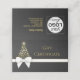Luxueux et riche design de vacances avec une splendide silhouette d'arbre de Noël avec des flocons de neige dorés. Décoré d'un arc cadeau en or blanc sur un arrière - plan gris foncé anthracite luxuriant. Ce certificat cadeau festif est parfait pour votre petite entreprise ou pour offrir à vos amis et à votre famille.