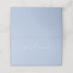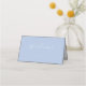 Carte pliée bleu & blanc minimaliste, chic et poussiéreuse. Cette carte de place de table mariage, dispose d'une police de script moderne, d'une ligne pour les noms d'invités manuscrits, ainsi que d'une zone facultative pour le texte supplémentaire à l'intérieur de la carte.