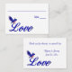 Table mariage personnalisée place des cartes avec le mot Amour dans des lettres élégantes et un joli bleu. Personnalisez le dos de la carte avec vos noms et la date du mariage en utilisant le modèle. Ce design est disponible sur de nombreux produits dans ma galerie. Visitez Smilin' Eyes Treasures pour voir plus de cartes et cadeaux mariages et nuptiaux.