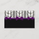Un design amusant et élégant, avec des pois noirs sur le blanc, drapé contre un arrière - plan noir avec du velours comme un ruban et des arcs en violet.