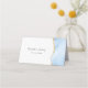 Cette élégante table de mariage moderne réservée carte de place dispose d'une bordure d'aquarelle bleu bébé ornée d'une fausse parties scintillant dorée. L'avant de la carte donne des espaces pour le nom et le numéro de table du client. Le mot "table" apparaît dans le script d'écriture manuscrite gris charbon avec des swashes avant et après. Customisez le verso de la carte avec les noms de la mariée et du marié dans le script d'écriture manuscrite grise au charbon de bois et la date du mariage ci-dessous.