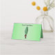 Cette carte de place pliée pour vos fêtes, événements et mariages est un mélange de vert moyen à vert clair au centre avec un homme amusant avec un grand cornichon vert pour une tête avec un visage surprenant portant un costume marron. Customisez la zone de nom et de numéro de table et le texte au verso avec les modèles.