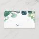 Cette carte verte luxuriante et mariage d'eucalyptus est parfaite pour une réception de mariage jardin et élégante. Le design botanique moderne présente de magnifiques eucalyptus bleu aquarelle et des feuilles verts. Personnalisez le dos des cartes de lieux avec les noms de la mariée et du marié et la date. Achetez en gros et écrivez à la main les noms des invités et les numéros de table sur les cartes imprimées à leur arrivée.
