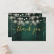 Une élégante grange vert émeraude lampes à cordes mariage merci carte de réception, personnalisée avec un message spécial et les noms de la mariée et du marié. Conçu par Thisisnotme©