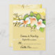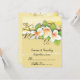 Carte de placement de mariage personnalisée vintage plumeria lierre jaune blanc, avec de beaux plumerias blancs et orange et du lierre sur fond jaune grunge. Orange, blanc, vert, jaune. Pliez la carte le long du centre.