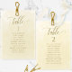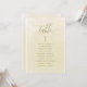 Aidez vos invités à trouver leur table avec ces élégantes cartes de plan de table à l'aquarelle aux teintes champagne et crème avec les noms des invités. Cartes double face pour que les invités puissent regarder des deux côtés, avant ou arrière, pour trouver leurs noms. Espace clair tout autour vous donnant la liberté d'utiliser des pinces ou de percer un trou pour les présentoirs suspendus, ou d'utiliser un porte-table/cadre. Exquis champagne, ivoire, crème beurrée et fond lavé à l'aquarelle aux teintes dorées et texte ton doré. Détails de calligraphie manuscrite moderne. Partie de notre collection "Mariage Monogramme Botanique Aquarelle Champagne Crème" avec une variété de produits coordonnés disponibles, y compris des cartes de numéro de table et des menus et plus encore. Visitez la collection entière avec ce lien : https://www.zazzle.com