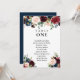 Carte de plan de table de mariage bordeaux floral