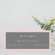 Élégantes et minimalistes, cartes de plan de mariage pour le haut de table avec texte blanc sur fond gris et bordures rose blush.