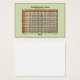 Une table de multiplication orange et beige au format carte de visite chubby pour que vous puissiez l'insérer facilement dans votre poche, votre porte-monnaie ou dans votre carnet mathématique ou votre classeur. Ce tableau aidera tous les apprenants, qu'ils soient des enfants ou des adultes qui travaillent sur leurs compétences en mathématiques. Ce design est disponible sur d'autres produits tels que les mousepads, mugs, boutons, dessous de verre, cartes photos et plus encore, vous pouvez choisir celui qui fonctionne le mieux pour vous ou choisir plusieurs formats pour apprendre où que vous soyez. Cette carte est livrée en paquets de 100, ce qui permet aux enseignants de donner à leurs élèves ou aux familles nombreuses où beaucoup apprennent ou référencent leurs compétences mathématiques à la fois. Ou les parents qui font des études à domicile peuvent acheter un pack pour plusieurs parents pour partager le coût. © Angel Honey, 2011