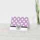 Ces cartes à points pourpres personnalisées pour éléphant, mignonnes et tout usage, sont conçues avec un petit éléphant gris mignon en cercle blanc sur un motif pois mauve et blanc. Ces cartes sont parfaites pour les fêtes de Baby shower et les sentiments quotidiens. L'intérieur est imprimé sur mesure avec votre propre texte, ou le texte modèle peut facilement être supprimé pour laisser l'intérieur de ces cartes en blanc pour écrire à la main vos sentiments de remerciements ou messages personnels. Pas de commande minimum. Des remises en vrac s'appliquent.
