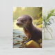 Une carte de voeux plate pour les amoureux de la faune, avec l'IA généré de la peinture numérique d'une jolie loutre de bébé jouant dans un ruisseau de montagne.