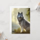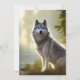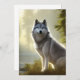 Une carte de voeux plate pour les amoureux de la faune, avec l'IA généré peinture numérique d'un magnifique loup de bois assis près d'un ruisseau de montagne.