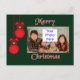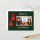 Cette carte postale de Noël joyeux, facile à personnaliser, est accentuée de deux ornements d'arbre de Noël sur un arrière - plan vert foncé à gauche de votre image. Modifiez la couleur et le style du type de texte dans la zone de message située de l'autre côté. Postage est ridiculement cher - les cartes postales sont moins chères à acheter ET à poster!