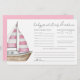 Cette carte horizontale Baby Predictions & Conseils dispose d'un design simple et élégant, parfait pour n'importe quel baby shower. Sur le côté gauche, il y a un voilier d’aquarelle douce avec voiles rayées roses et blanches et un léger contact d’eau couleur en dessous, ajoutant un détail marin doux sans être trop thématique. La disposition est minimale, avec des polices et des lignes grises dans un mélange de délicat script manuscrit et des polices serif classiques pour un look intemporel et raffiné. Les invités sont invités à remplir leurs meilleures devis pour les détails de l’arrivée du bébé, comme la date, l’heure, le poids, la couleur des yeux, la couleur des cheveux et la personne à qui le bébé ressemblera. En bas, il y a de l'espace pour laisser un peu de conseils aux parents à venir et signer leur nom. L'arrière est revêtu d'un arrière - plan rose massif, mais vous pouvez le changer en n'importe quelle couleur pour correspondre à votre thème de douche. Entièrement personnalisable, cette carte est un ajout doux et élégant à votre célébration.