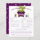 Thème d'halloween mignon baby shower prédictions bébé et carte de conseil avec une illustration du chaudron de sorcière violette fumant la fumée verte avec des bougies et des potions. Les textes sont modifiables. Un jeu parfait à jouer pendant la douche et sera certainement un grand gardien! La carte demande aux invités de prédire à quoi ressemblerait le bébé.