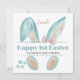 Carte de Pâques personnalisée. Modifiez le nom et le texte. Il peut être pour n'importe quel gentil bébé garçon, petit-fils, fils, neveu, filleul, beau-fils... L'aquarelle douce est un art qui fait fondre les coeurs. Vérifiez ma carte à pinkcard - une variante pour boa girl avec des moutons ou d'autres mignons bébés animaux. Cette Pâques est spéciale. Il y a un bébé mignon dans la famille. (1ère carte de Pâques pour Grandson, Fille, Fils, Nièce, Nephew, Cousin, Godgirl, Godson Pâques) avec aquarelle art des oreilles et pattes de lapin. Le dos de la carte a un simple - avec beaucoup d'espace pour vous d'écrire votre propre message et vos souhaits.