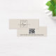 Carte de présentation de produit miniature pour boucle d'oreille de couleur brun clair ou autre couleur avec modèle de logo personnalisé centré et code QR au verso. Les guides de boucle d'oreille peuvent être ajustés en ajoutant et en supprimant des espaces dans le champ de modèle, et en déplaçant l'élément entier dans l'outil de conception.