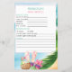 Prédictions et conseils baby shower. Une activité amusante pour impliquer les invités à votre baby shower, avec des paroles de sagesse pour les parents d'être. La carte de jeu présente un design aquarelle avec une scène de plage rêvée avec cocktail de noix de coco, tongs et lunettes de soleil. Thème neutre pour votre luau, surf ou baby shower à thème de plage pour bébé fille ou bébé garçon.