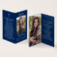 Personnalisez cette carte de prière noire pliée de sympathie sur un arrière - plan bleu classique avec 2 photos et les détails de votre être cher. Utilisez le texte actuel ou ajoutez facilement votre texte personnalisé. Facile à customiser photos et texte. Nos sincères condoléances en cette période difficile.