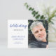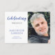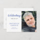 Cette élégante carte de prière de mémorial photo, avec un texte bleu, est une belle façon de se souvenir d'un être cher pendant la célébration du service de la vie. Cela fait un beau souvenir que vos invités peuvent afficher dans leur maison après.