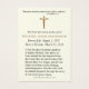 Carte de prière commémorative des funérailles