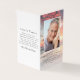 Nos petites cartes de prières commémoratives mesurent 2" x 3,5" lorsqu'elles sont pliées. Ce design a de l'espace pour une photo de votre bien-aimé sur le devant avec leur nom et leurs dates. A l'intérieur, vous pouvez ajouter une autre photo et un court verset ou une prière. Au fond, vous pouvez ajouter des mots de remerciement. Veuillez noter que cette carte ne peut pas être laminée. Nous avons une gamme de cartes de prières laminées à plat disponibles dans notre magasin.