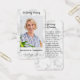 Honorer la mémoire d'un être cher avec notre élégante carte de prière commémorative, conçue pour les funérailles et les célébrations de la vie. Cette carte vous permet d'ajouter une photo chère, en créant un hommage personnalisé qui capture l'essence de votre bien-aimé. Photo personnalisable : Inclure une image préférée pour garder leur esprit proche. Design réfléchi : L'élégant arrière - plan en marbre blanc symbolise la pureté et la paix. Poème de coeur : Choisissez parmi une variété de poèmes de sympathie ou fournissez le vôtre pour express vos sentiments. Compact et pratique : dimensionné parfaitement pour une distribution facile aux services ou pour envoyer comme gardien à la famille et aux amis. Célébrez la vie et l'héritage d'un être cher avec une carte de prière magnifiquement conçue qui sert de mémoire durable et une source de confort pendant les moments de souvenir.