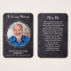 Cartes de prières funéraires Rustiques de Chalkboard Sympathy. Cette simple carte de prière commémorative présente une photo élégante dans une couronne botanique sur un motif de tableau rustique. Avant "In Loving Memory" Personnalisez cette carte de prière funéraire commémorative avec vos proches photo, nom & dates, et sentiment. Retour ~ Poème 'Miss Me', qui peut être personnalisé, s'il vous plaît tendre la main si vous voulez un design avec un poème spécifique autre que. Cette carte de prière commémorative sera un souvenir précieux, pour les services funéraires et la célébration de la vie. DROIT D'AUTEUR © 2020 Judy Burrows, Black Dog Art - Tous droits réservés. Carte de prière commémorative de la photo funéraire