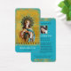Belle et unique carte de prière catholique de la Vierge Marie pour se souvenir de l'âme défunte plus jeune. Cette carte double face est entièrement modifiable dans un style contemporain frappant avec étoiles dorées, feuille d'or et arrière - plan turquoise.