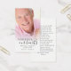 Cette carte de prière commémorative peut être remise en souvenir lors d'une célébration de la vie ou d'un service funéraire ou en hommage spécial à ceux qui n'ont pas pu y assister. Cette carte peut être personnalisée avec une photo préférée et votre choix de prière ou de poème.