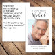 Cette carte de prière commémorative peut être remise en souvenir lors d'une célébration de la vie ou d'un service funéraire ou en hommage spécial à ceux qui n'ont pas pu y assister. Cette carte peut être personnalisée avec une photo préférée et votre choix de prière ou de poème.