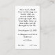 Le design avant offre un espace pouvant accueillir jusqu'à deux photos. L'image du haut de la Vierge Marie bénite peut être laissée telle quelle ou remplacée. Le nom de l'enfant est affiché en bas en bleu. Tout le design est encadré en bleu. Une bande blanche est présentée en bleu sur le nom de l'enfant porteur avant. Reverse propose une prière personnalisable pour votre bébé avec la date de naissance et les statistiques affichées ci-dessous. Idéal pour distribuer à des amis et à la famille pour annoncer la naissance du bébé. Également disponible en rose.