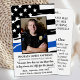 Carte de prière commémorative de la police de la Ligne Bleue Mince dans un design moderne drapeau américain dans les couleurs du drapeau de la police. Personnalisez cette carte de prière commémorative de la police avec la photo, le département, le nom et les dates de votre policier. Parfait pour les services de police d'honorer un officier déchu, et les gardiens de mémoriaux d'application de la loi. Citation de devant "Un amour plus grand n'a personne d'autre que celui-ci : poser sa vie à ses amis." Jean 15:13 ~ Retour citation "Un héros est...quelqu'un qui a donné sa vie à quelque chose de plus grand que soi." et prier "Nous vous tenons près." S'il vous plaît contactez-nous si vous voulez une prière personnalisée. DROIT D'AUTEUR © 2020 Judy Burrows, Black Dog Art - Tous droits réservés. Carte de prière funéraire commémorative de l'officier de police de héros
