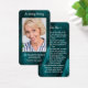 Cartes de prières funéraires Emerald Green Sympathy. Cette simple carte de prière commémorative présente un luxueux design de malachite vert émeraude. Avant "In Loving Memory" Personnalisez cette carte de prière funéraire commémorative avec vos proches photo, nom & dates, et sentiment. Retour ~ Poème 'Puissiez-vous toujours marcher dans Sunshine', qui peut être personnalisé, s'il vous plaît tendre la main si vous voulez un design avec un poème spécifique autre que. Cette carte de prière commémorative sera un souvenir précieux, pour les services funéraires et la célébration de la vie. DROIT D'AUTEUR © 2020 Judy Burrows, Black Dog Art - Tous droits réservés. Carte de prière funéraire Emerald Green